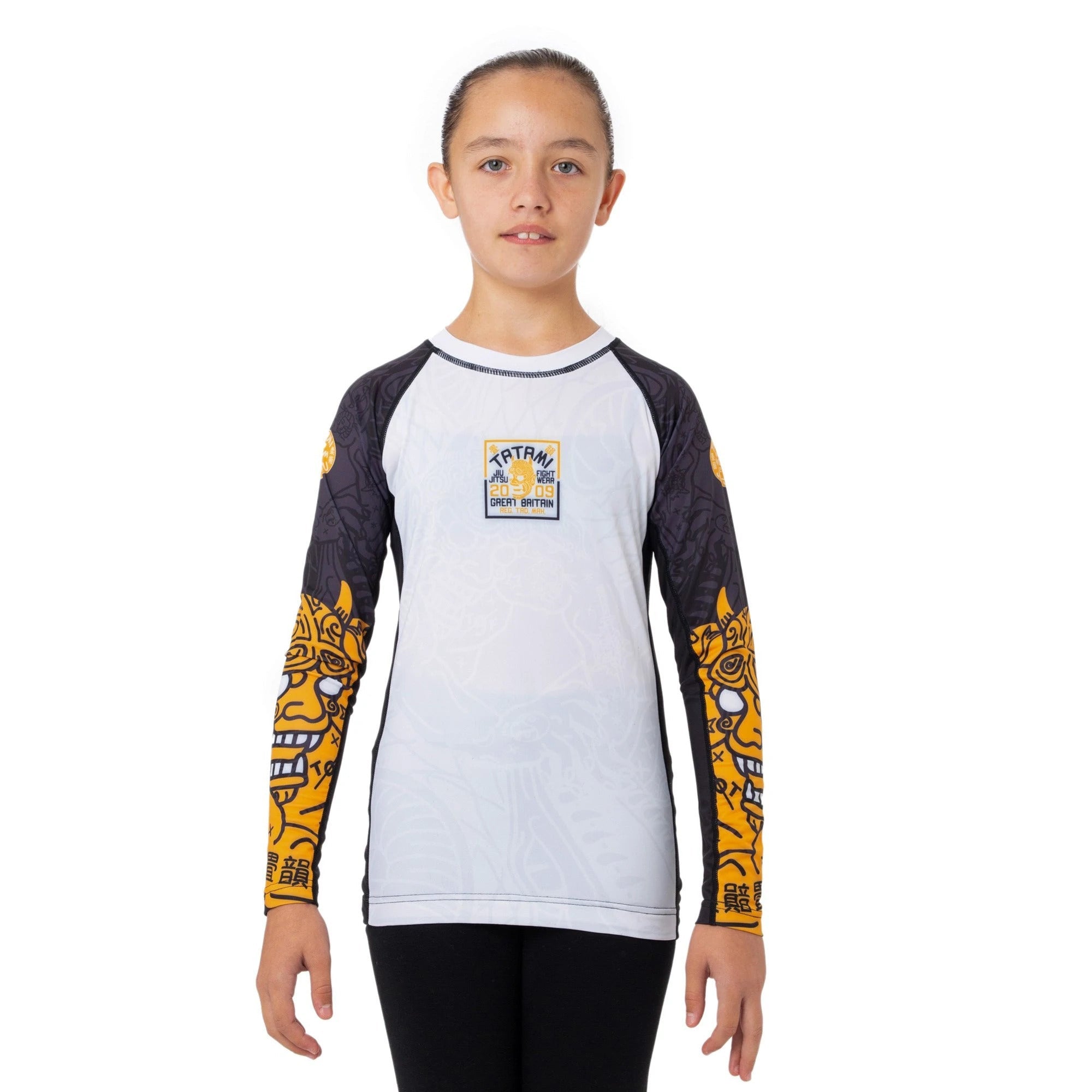 Rash guard features a devil grappling with a snake design dominating the front & back of the rash guard, with the devil design carried through to the sleeves.